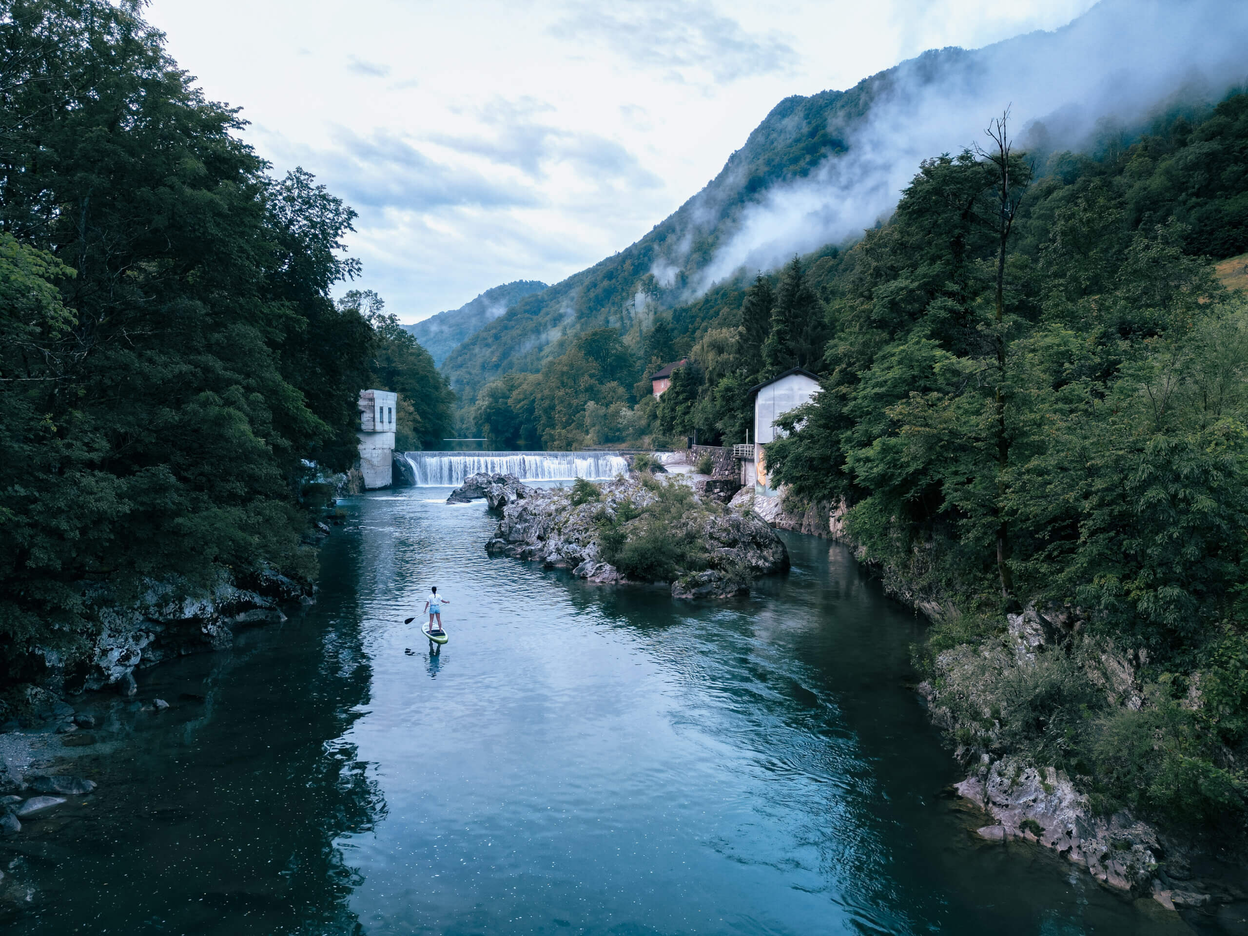 Unser letzter Tag in Slowenien begann früh, als wir zum Sonnenaufgang für ein Stand-Up-Paddling-Abenteuer auf dem Fluss Idrijca aufbrachen. Dieser Fluss ist nicht nur ein Paradies für Wanderer und Fotografen, sondern auch für Wassersportbegeisterte.